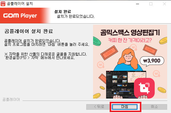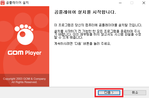 곰플레이어 설치는 간단하게 진행 할 수 있습니다.