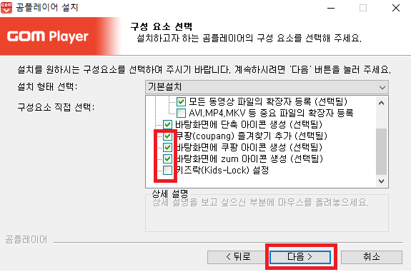 어떤 것을 선택하셔도 곰플레이어는 설치됩니다.